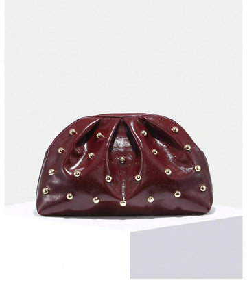 Style: Elegant, Fashionable Color: Burgundy Details: Frill, Ruched, Sequins Bag Size: Medium Closure Type: Kiss...