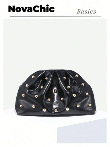 Details: Frill, Ruched, Sequins Style: Elegant, Fashionable Color: Black Bag Size: Medium Closure Type: Kiss...