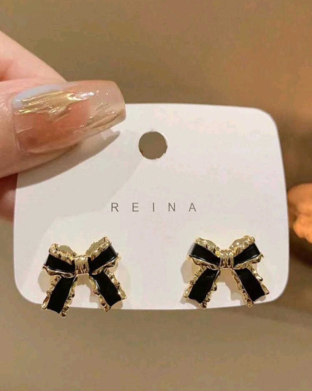 1 Pair Of Black And Gold Bowknot Stud Earrings With Elegant And Sophisticated Design Unique Gift Ear Jewelry. Halloween Valentine's Day
