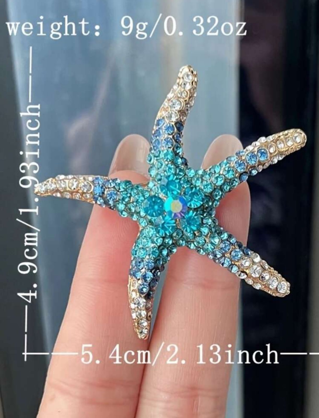 1pc Cartoon Zinc Alloy Rhinestone Starfish Brooch Pin, Exquisite Boutique Lapel Pin, DIY Suit Decor Dress Accessories Pin For Clothes Bag Charm School