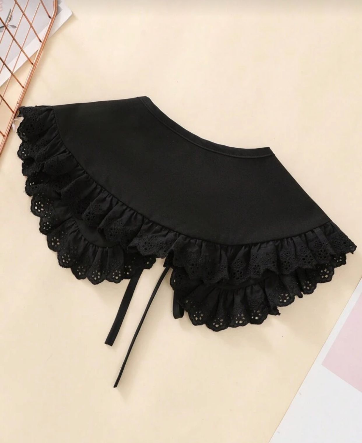 1pc Ladies' Black Peter Pan Collar Shawl With Lace Decoration, Fashion False Collar For Daily Wear Valentine's Day Valentines