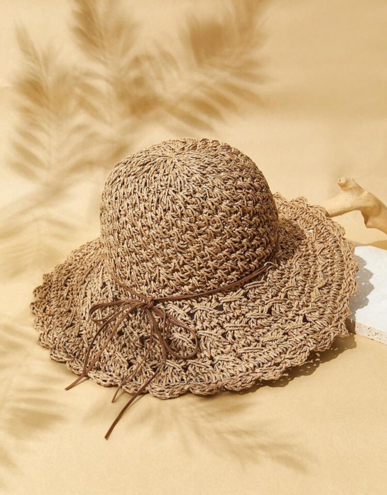 1pc Ladies' Cute, Basics Woven Texture, Handmade Crochet, Ruffled/Floral Edge Woven Hat, Suitable For Vacation, Picnic, Beach, Casual