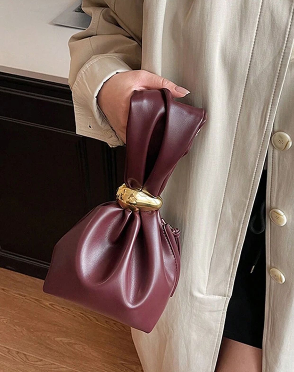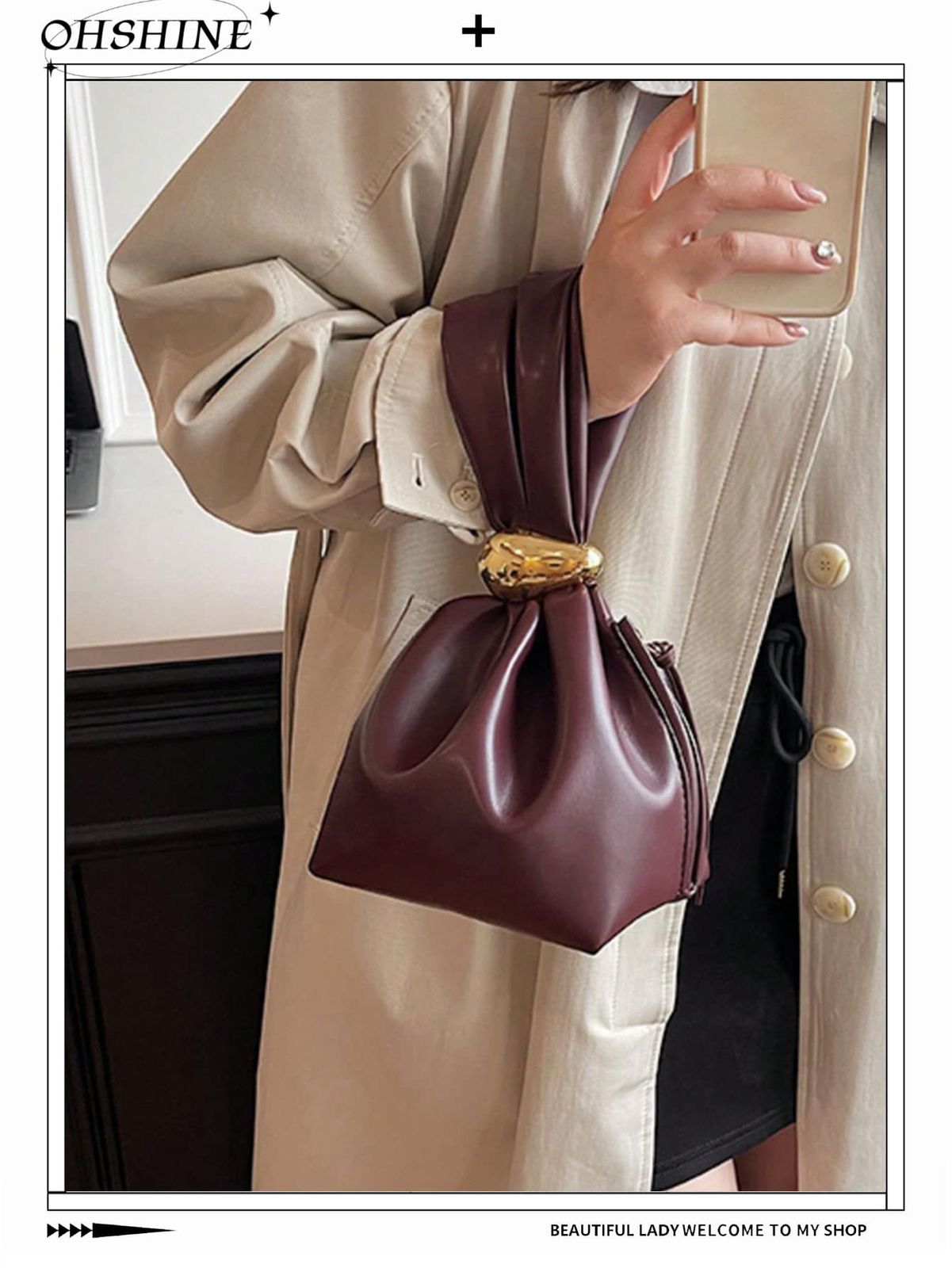 1pc Retro PU Leather Handbag, Bucket Bag For Women, Burgundy Color, Fashionable Burgundy Bag