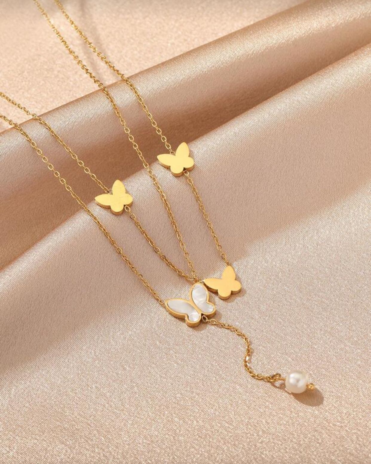 1pc Vintage Elegant Double Layer Gold Butterfly Shell Pendant Necklace, Simple Chic Style (OPP Bag Packaging Box For Shooting Only)