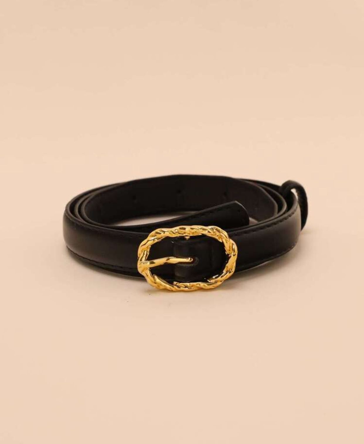 1pc Women's Black Pu Material Vintage Gold Buckle Versatile Belt Casual Summer, School Fall, Autumn, Halloween