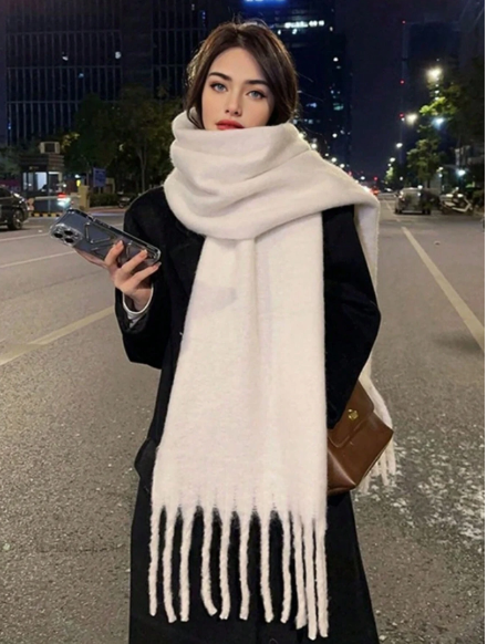 1pc Women's Thickened Solid Color Winter Scarf, Lady's Fashionable & Versatile Lazy Shawl