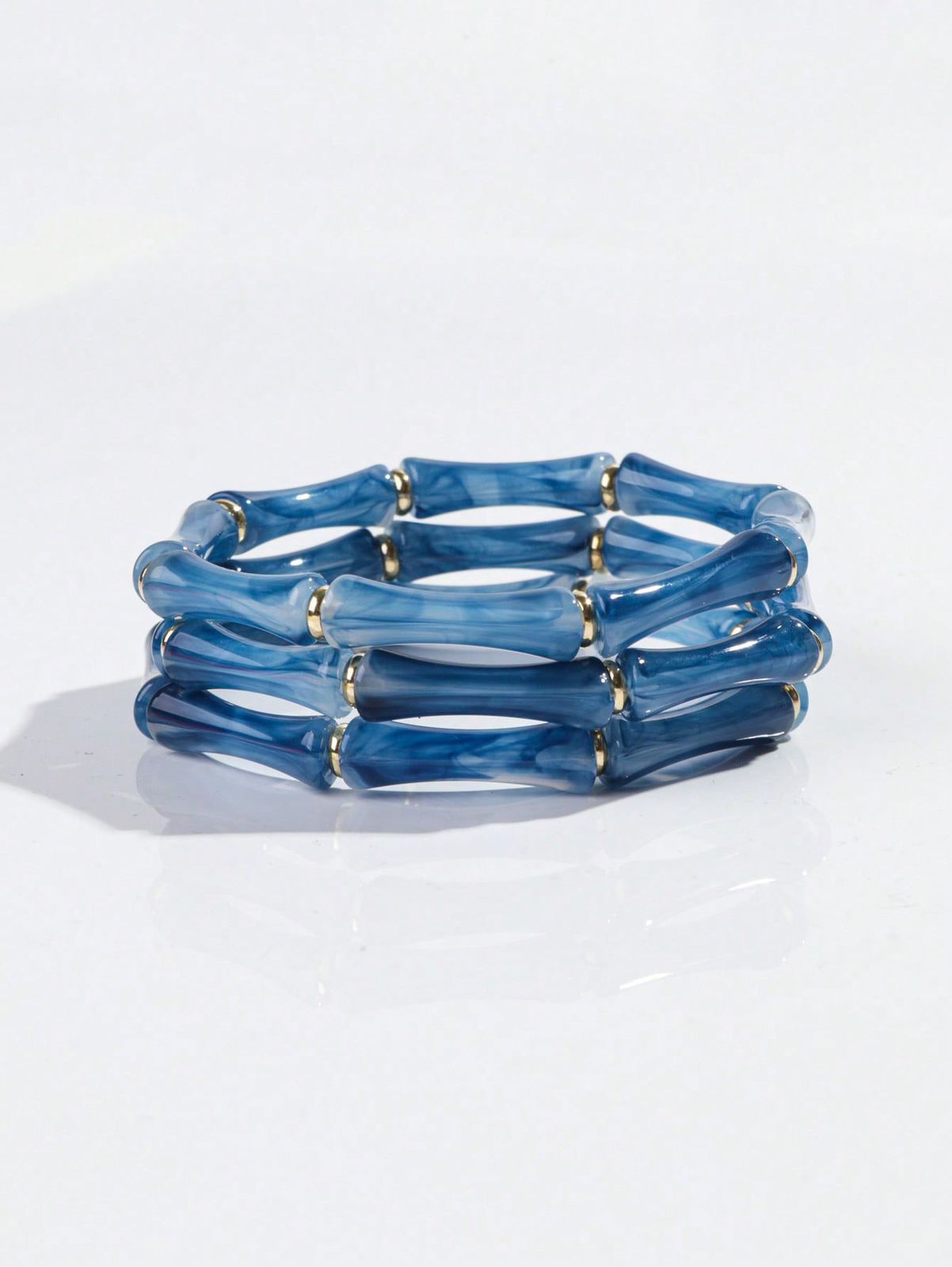 1set 3pcs Acrylic Marble Pattern Dark Blue Bamboo Joint Stacking Bangles Suitable For Women Daily Wear