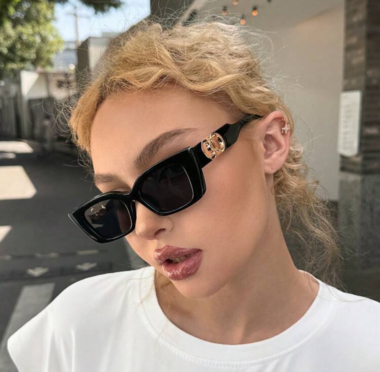 DareSee 1pc Women Small Rectangular Lens Metal Double Circle Decor Beach Party Vacation Fashion Glasses Boho Shades Beach Accessories Beach Accessories For Women Glasses Shades Basics Fall Winter Women Outfits Clothes Business Casual
