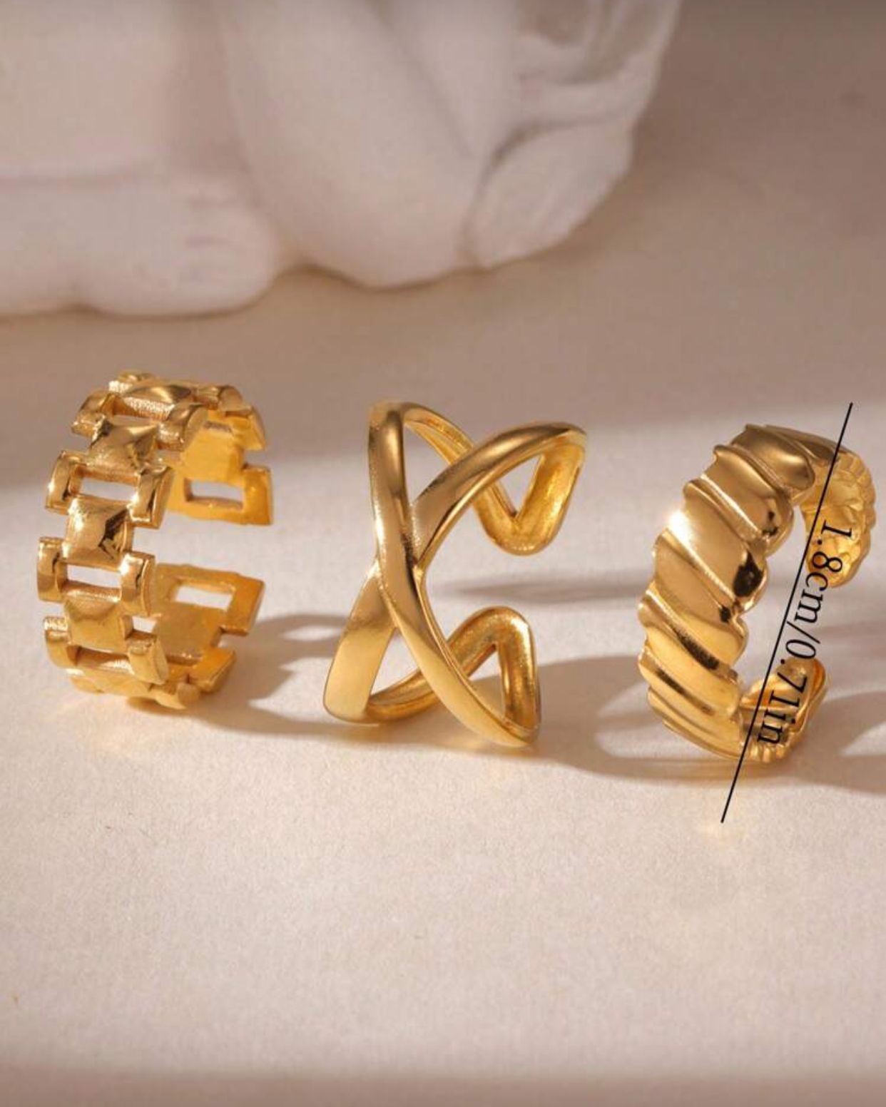 GEREIT 3pcs/Set 18K Stainless Steel Chain Style Hollow Cross Finger Rings, Suitable For Women Daily Wear