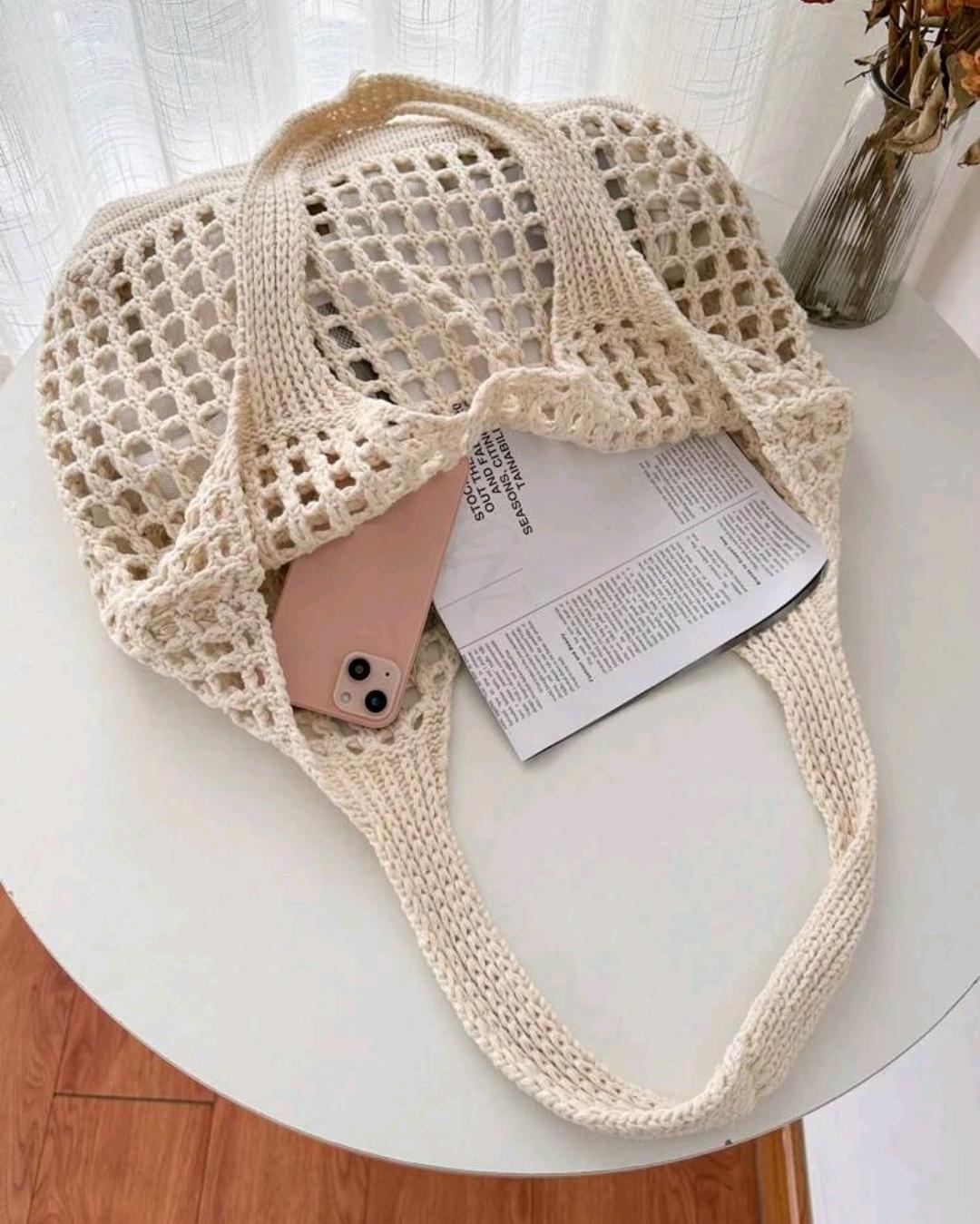 Lightweight,Casual Women's Minimalist Large Capacity Hollow Out Woven Shopping Bag