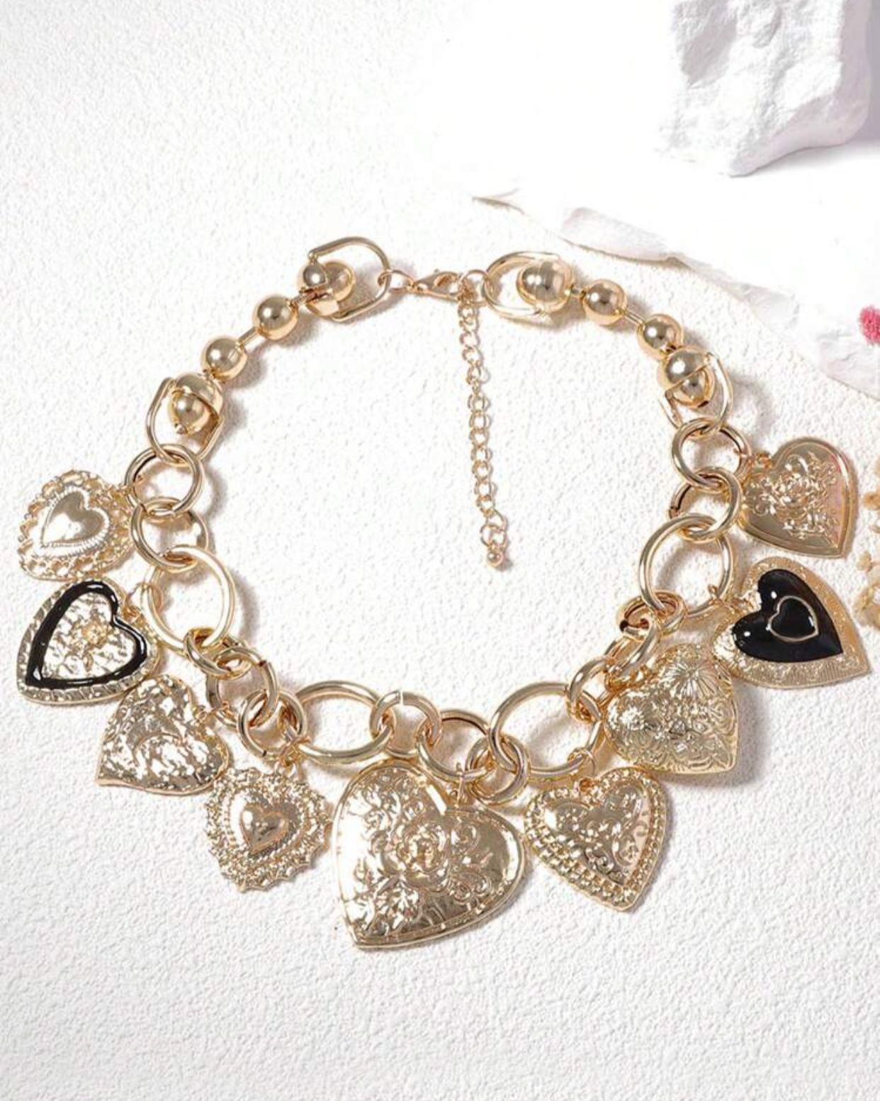PARERTQH 1pc Women Retro High-End Chain Metal Heart Pendant Necklace
