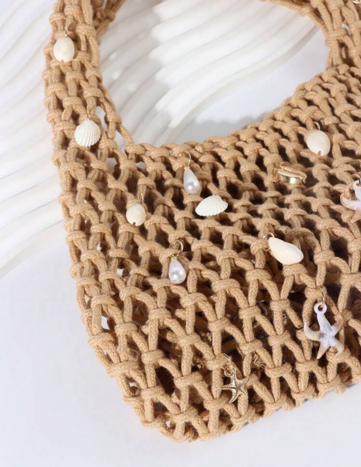 ROMWE Fairycore 1pc Fashionable Personalized Spring/Summer Beach Vacation Style Orange Ocean Woven Beach Bag, Large Size Women Handbag