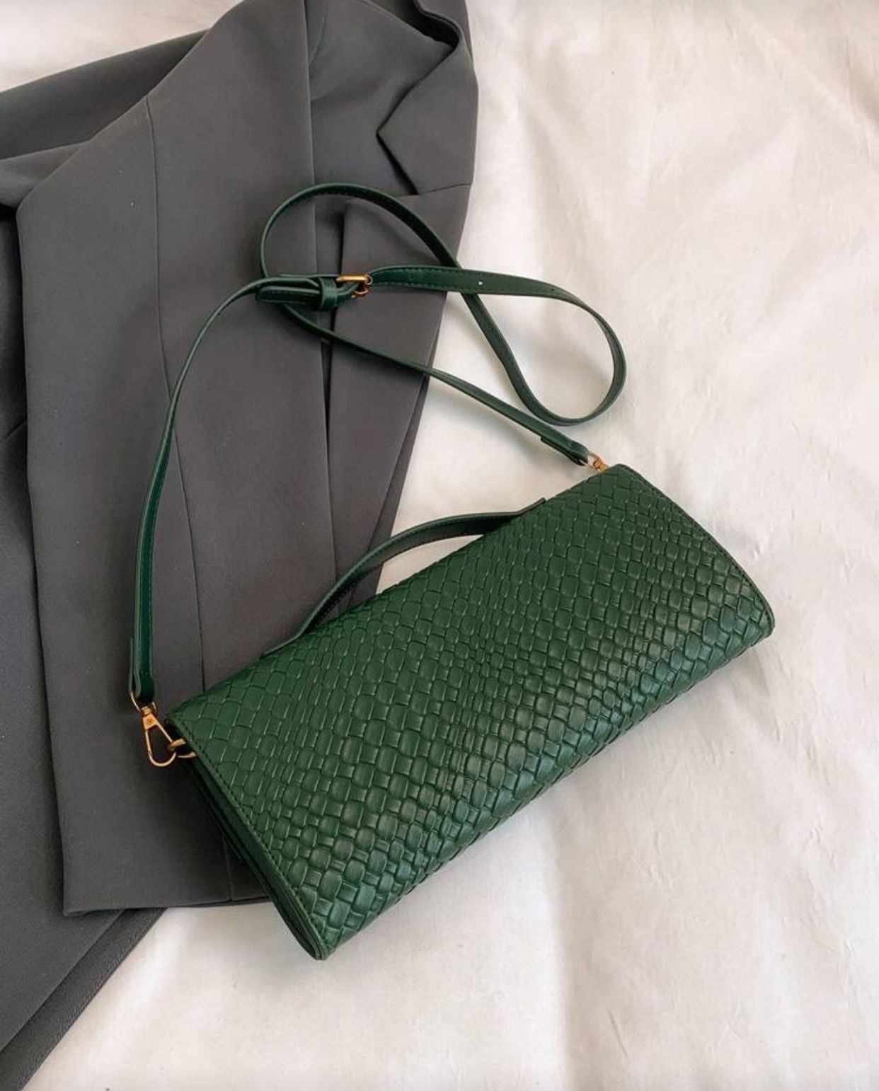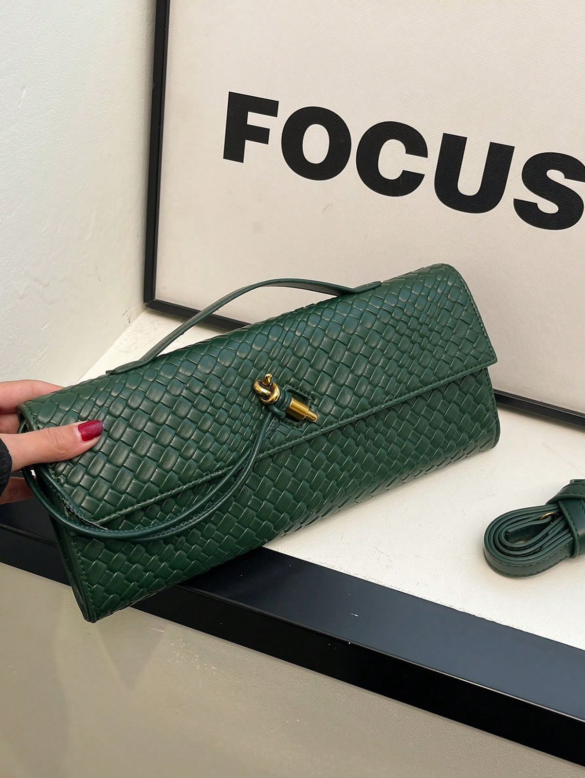 Women's Premium Solid Color PU Woven Texture Clutch Bag, Crossbody Design