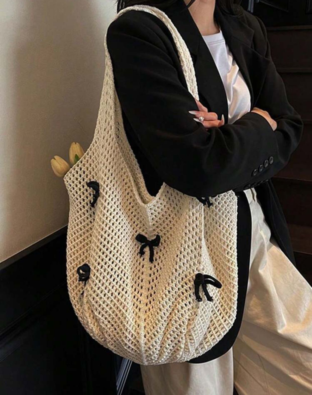 Yogodlns Casual Leisure Knitted Shoulder Bag Bohemian Sweet Weave Handbag